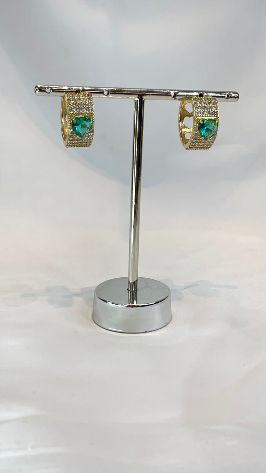 ARGOLA CRAVEJADA COM CORAÇÃO VERDE
