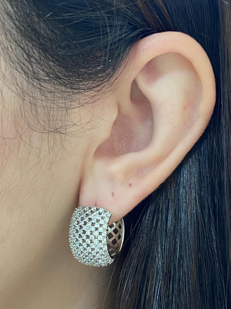 BRINCO ARGOLA BOMBÊ CRAV EM PAVÊ MULTIPLAS ZIRCONIAS RODIO