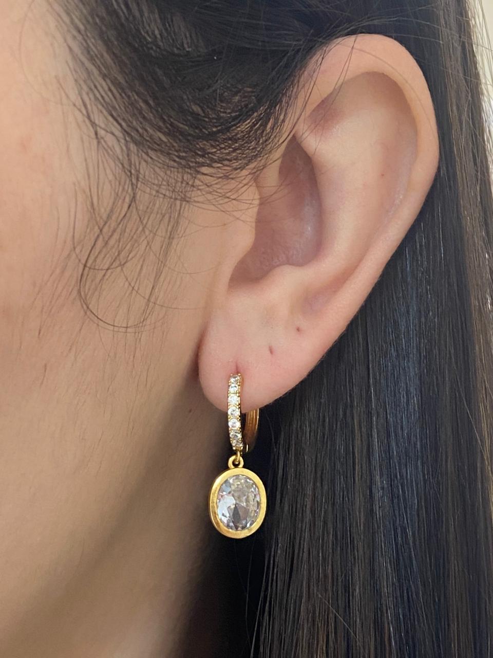 BRINCO ARGOLA CLICK CRAV COM PINGENTE OVAL CRISTAL