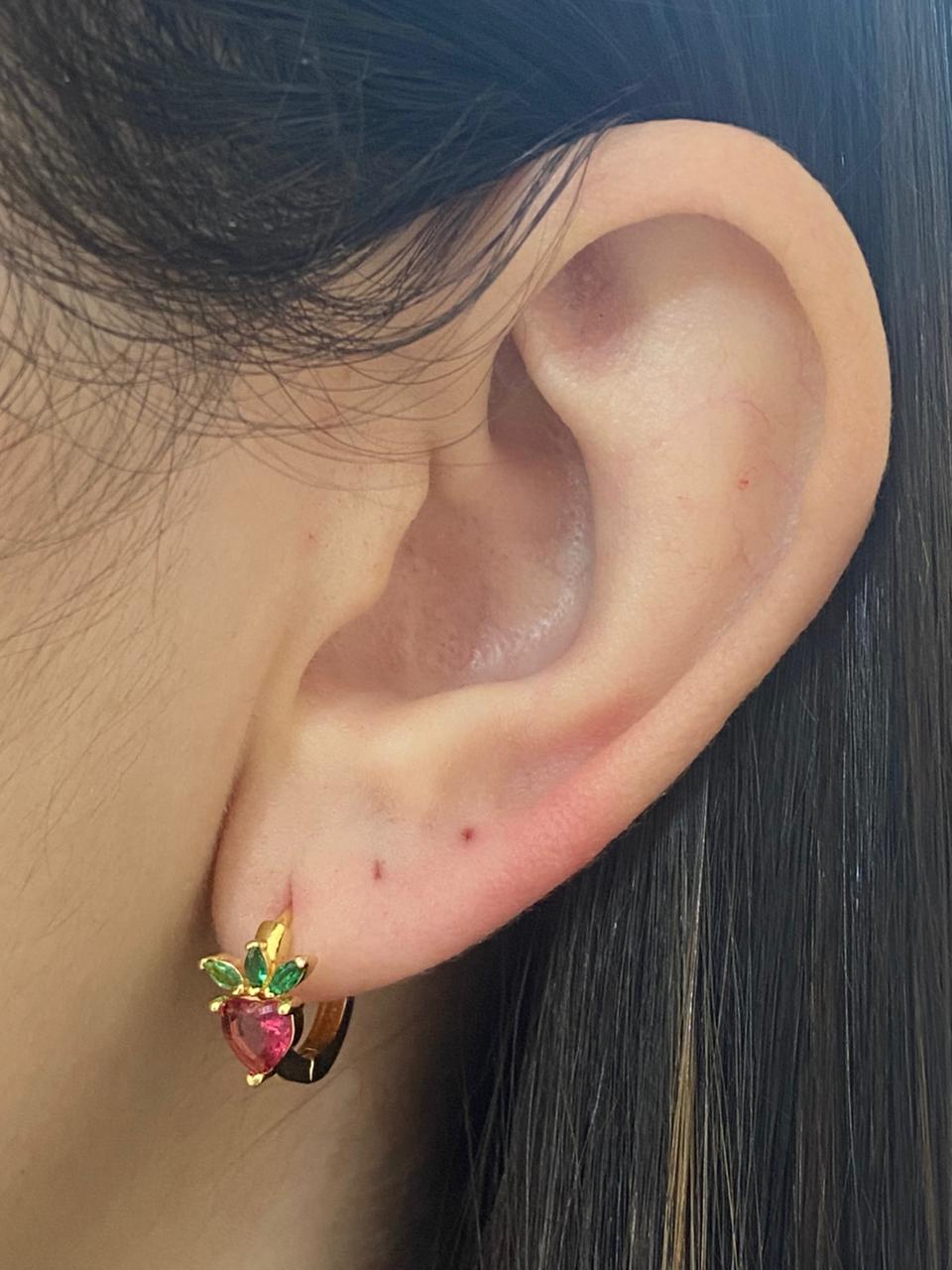 BRINCO ARGOLA CLICK MORANGO NA ZIRCÔNIA
