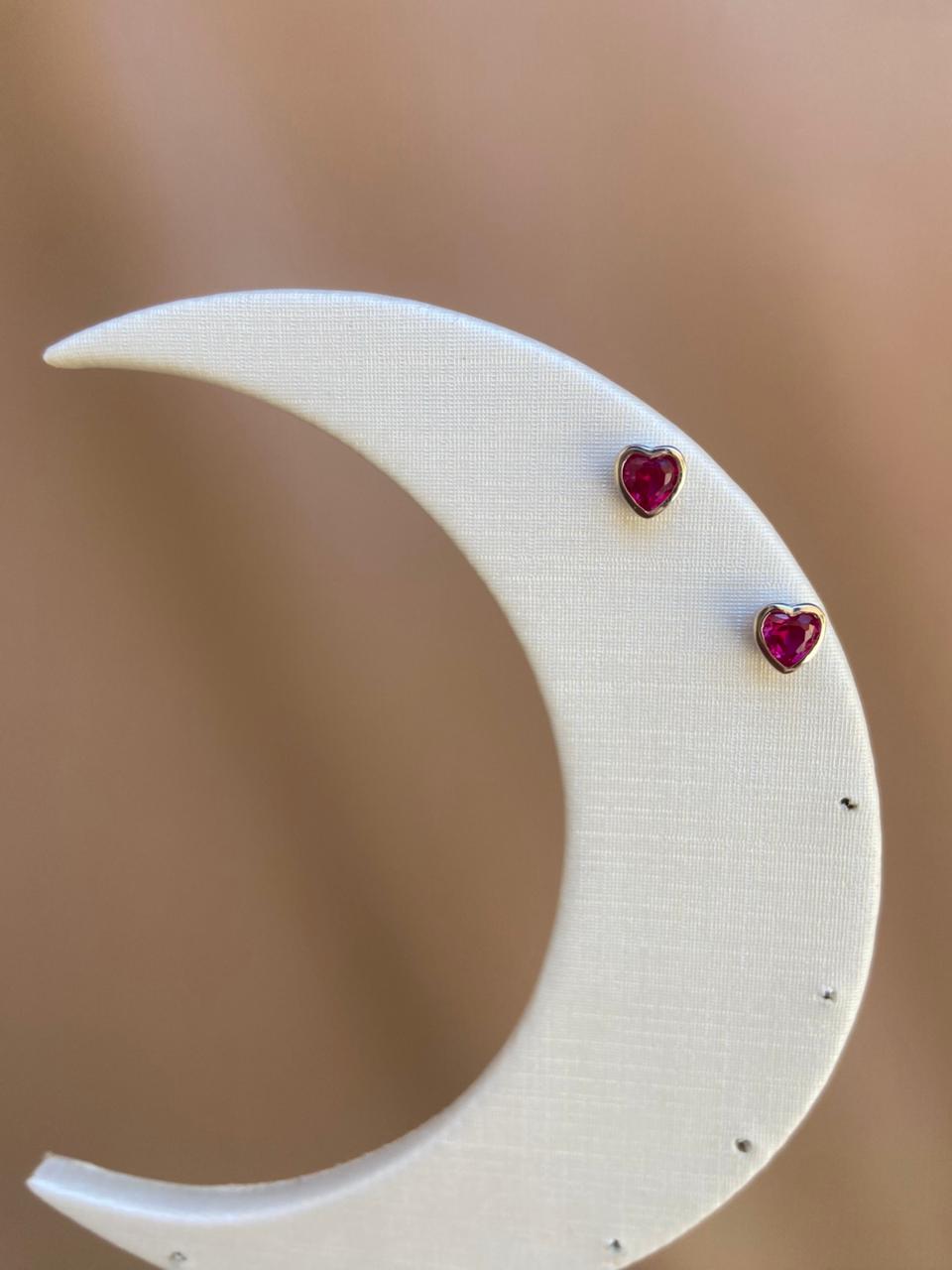 BRINCO CORAÇÃO ROSA PINK PRATA 925