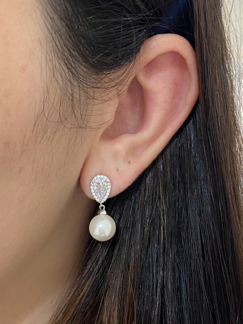 BRINCO DE PEROLA COM BASE GOTA CRAVEJADA