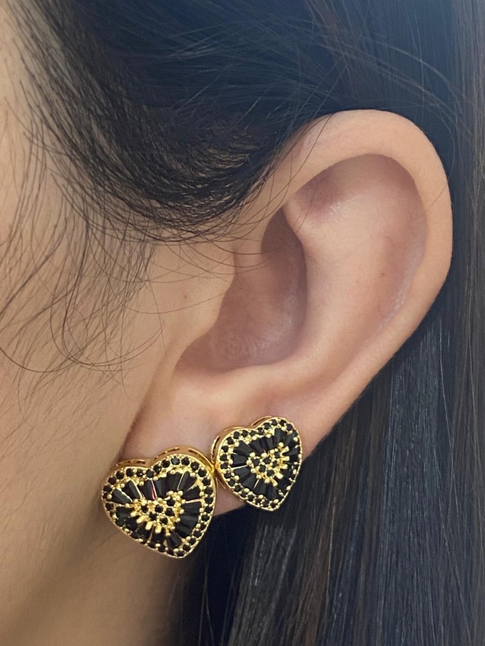 BRINCO DUO CORAÇÃO CRAV ZIRCÔNIA PRETA
