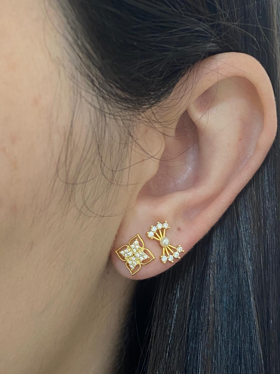 BRINCO DUO LAÇO E FLOR COM ZIRCÔNIA