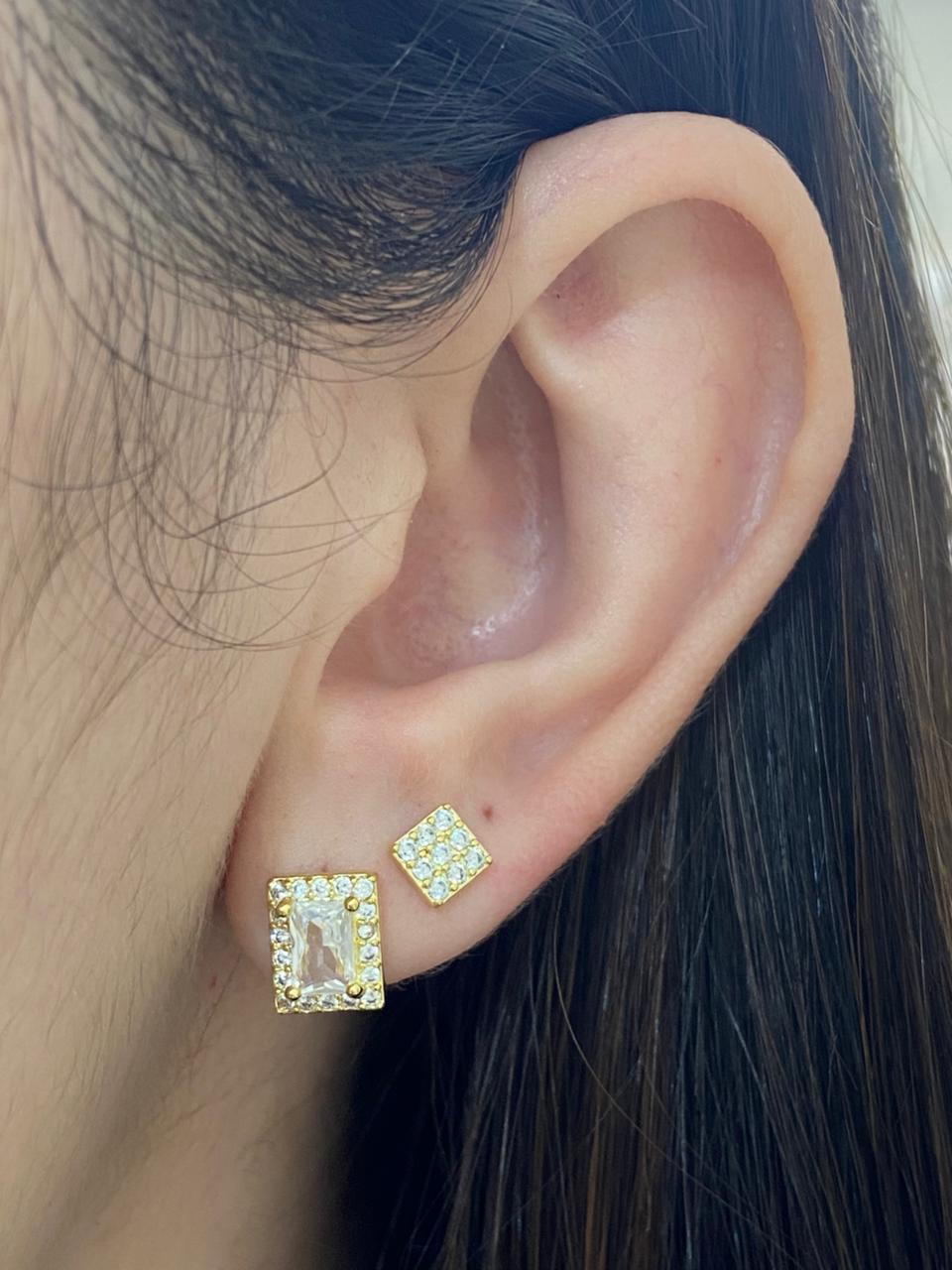 BRINCO DUO QUADRADO CRAVEJADO