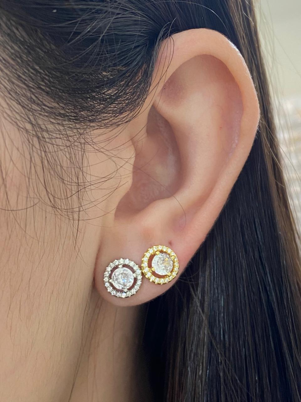 BRINCO DUO REDONDO CRAVEJADO RODIO E DOURADO
