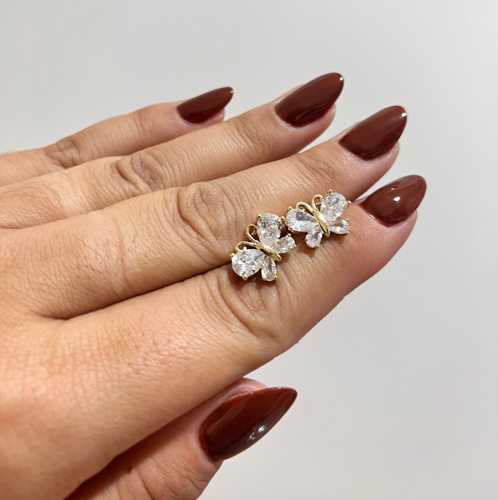 Brinco fixo borboleta cristal ouro