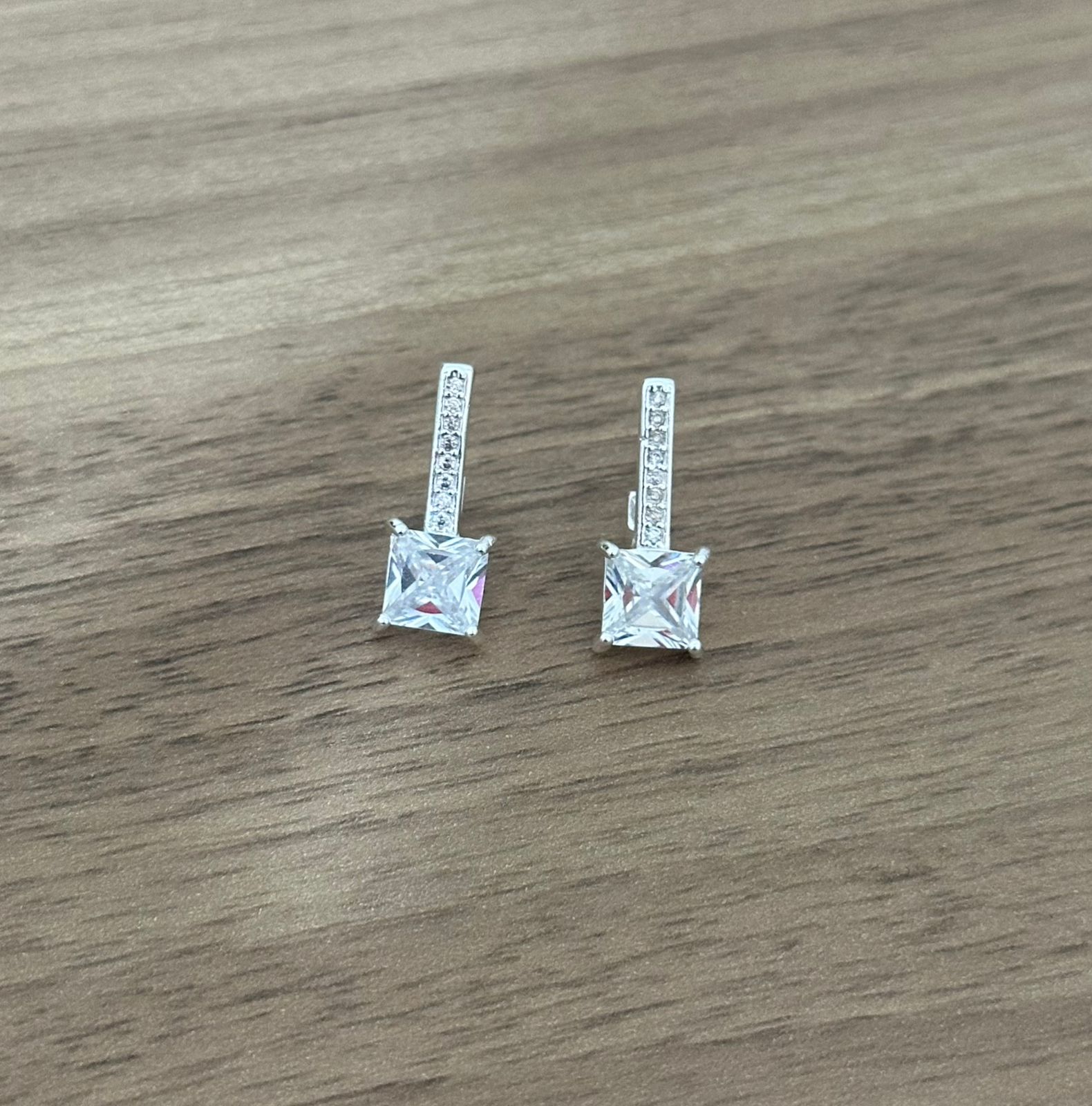 Brinco fixo cravejado com ponto de luz quadrado prata