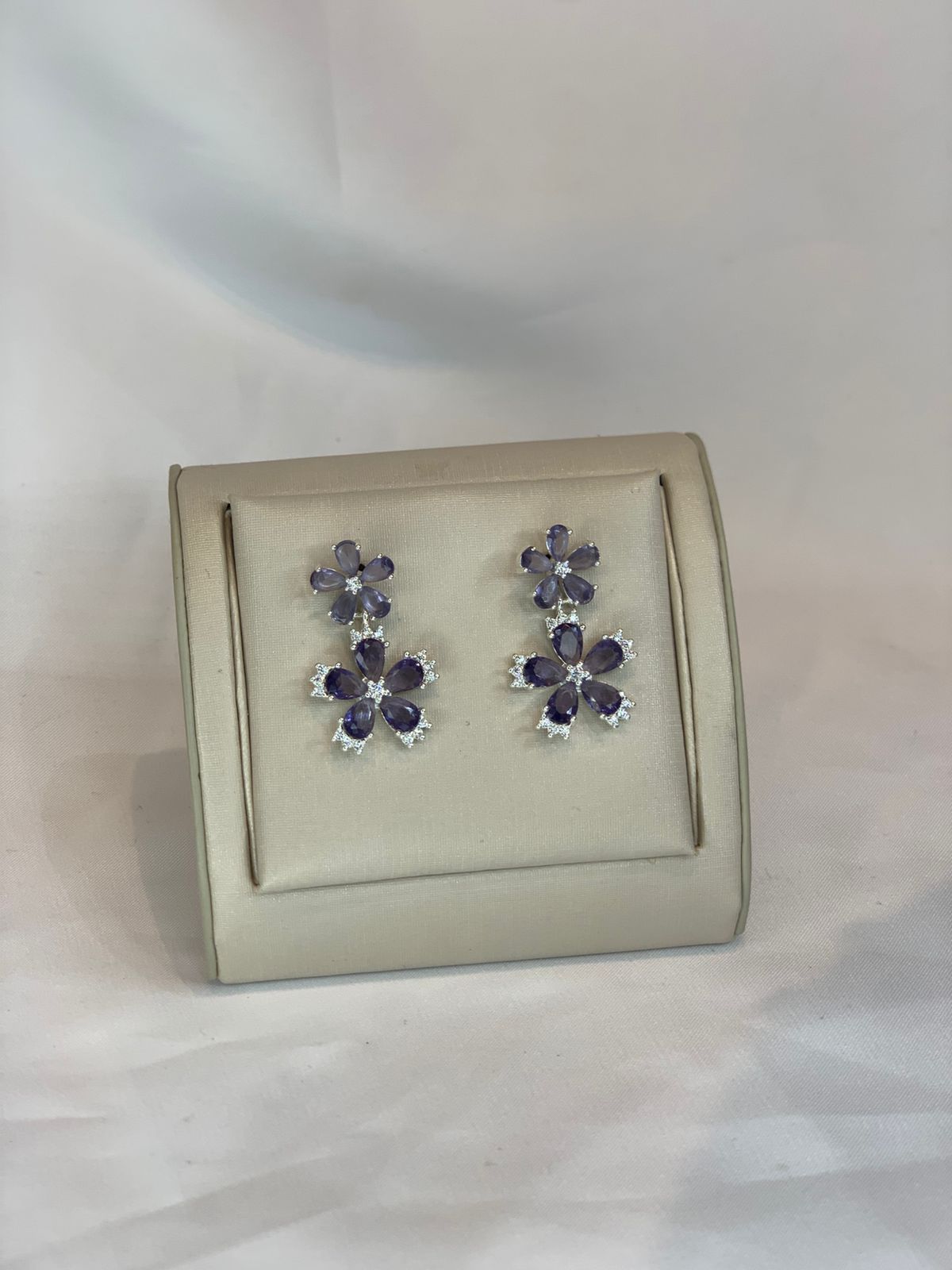 BRINCO FLOR DUPLA CRAVEJADA LAVANDA