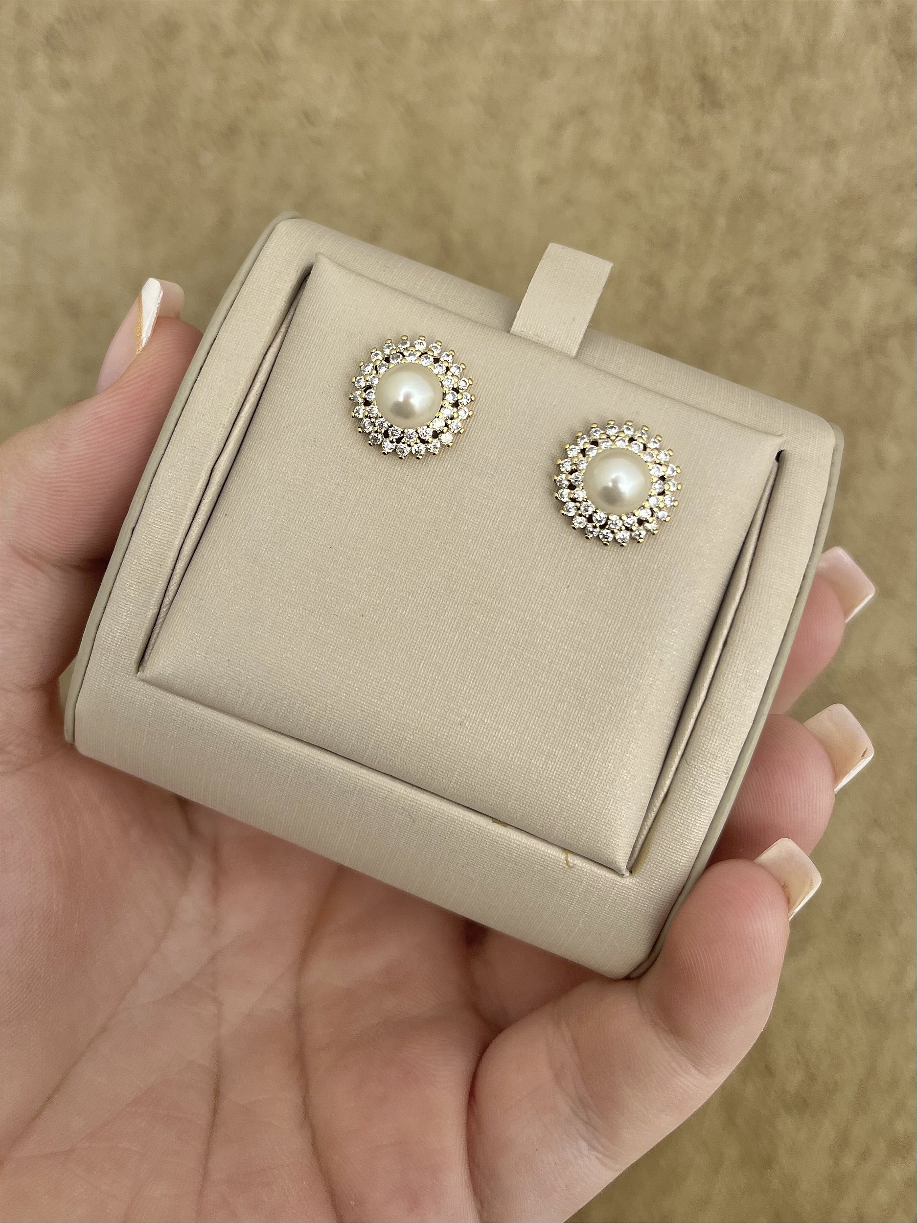 Brinco pérola cravejado dourado