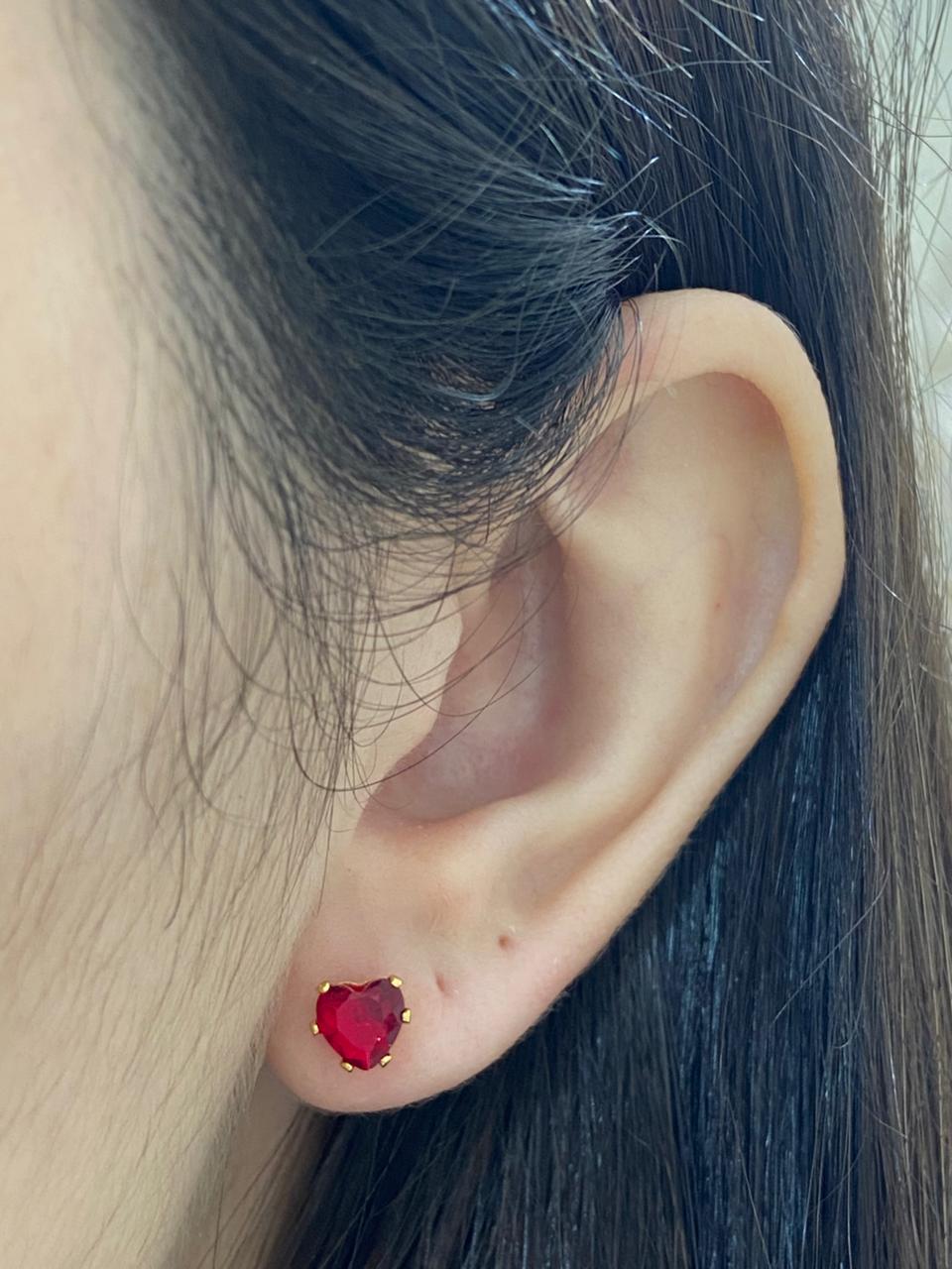 BRINCO PONTO LUZ CORAÇÃO RUBI AÇO