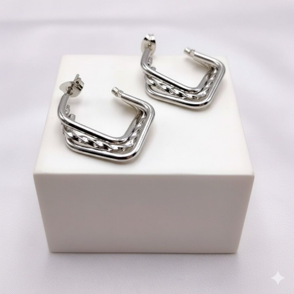 BRINCO PRATEADO ARGOLA TRIPLA ENTRELAÇADO AÇO INOX
