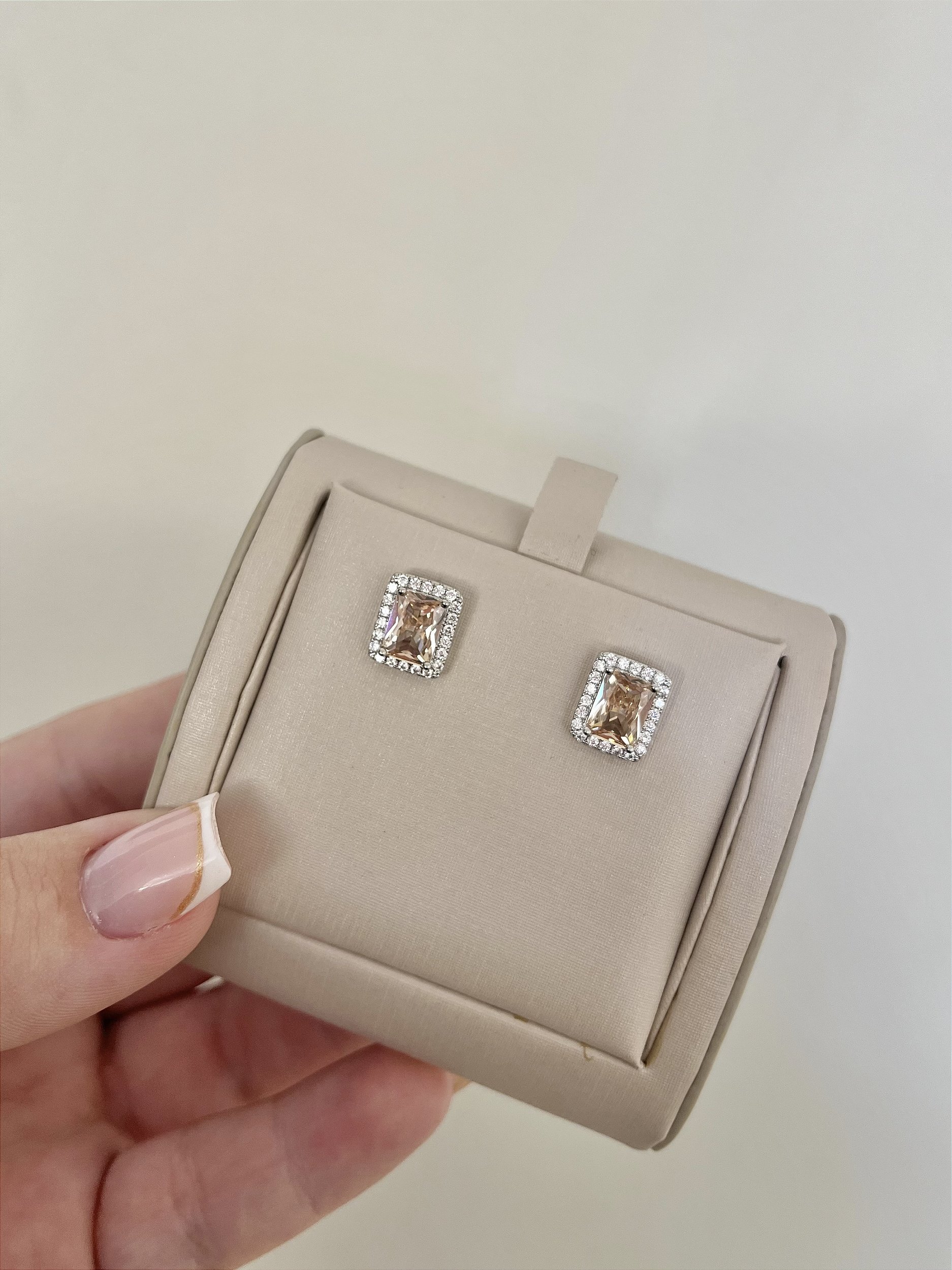 Brinco retangular crav Champagne