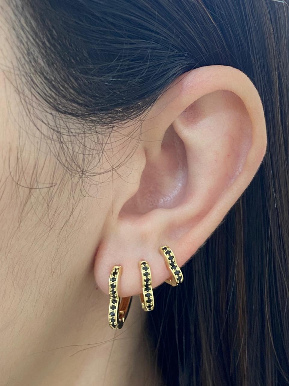 BRINCO TRIO ARGOLA CORAÇÃO CRAV ZIRCÔNIA PRETA