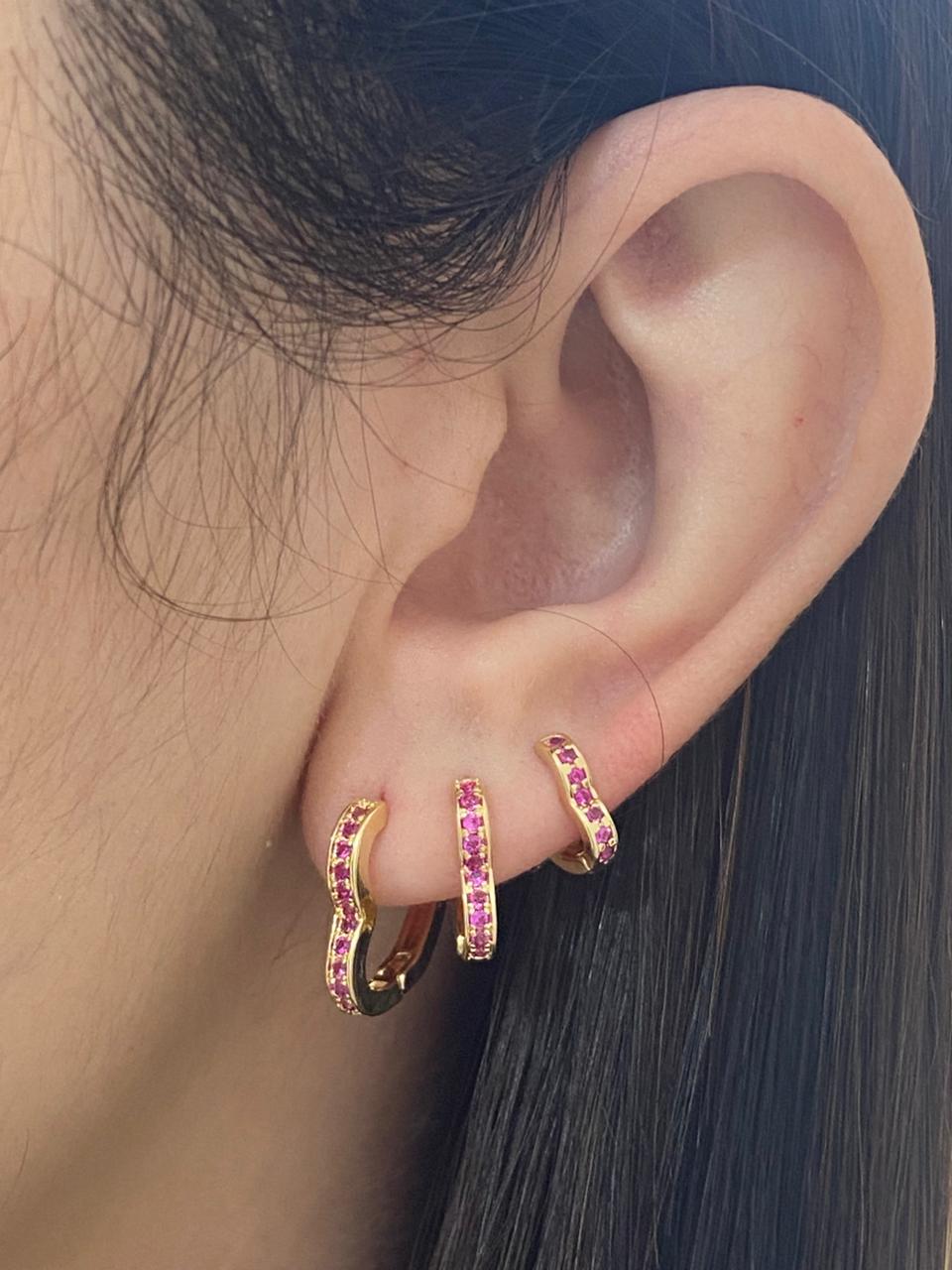 BRINCO TRIO ARGOLA DE CORAÇÃO VAZADO CRAV PINK