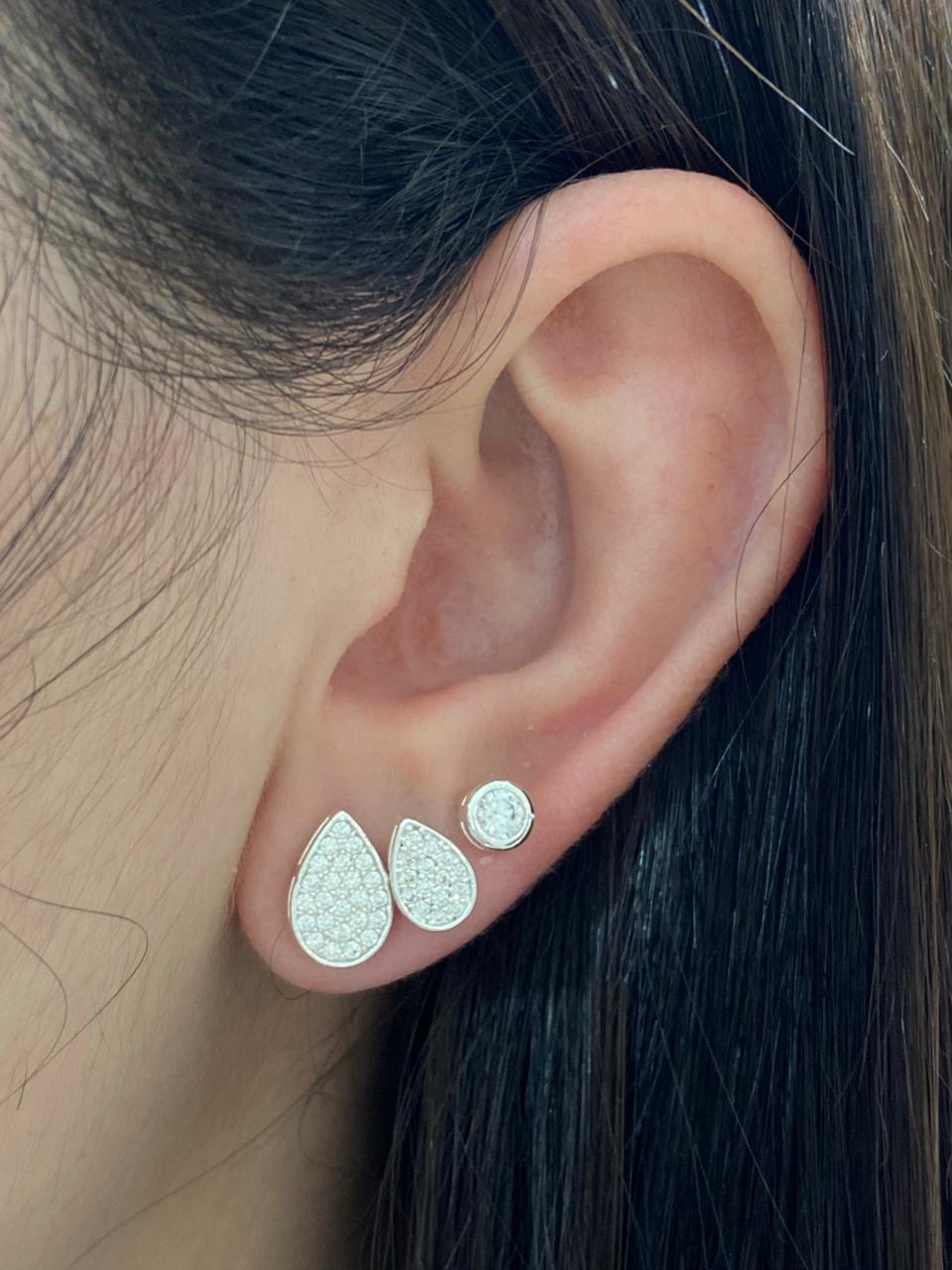 BRINCO TRIO ARGOLA GOTA GRAVEJADA COM PONTO DE LUZ PRATA