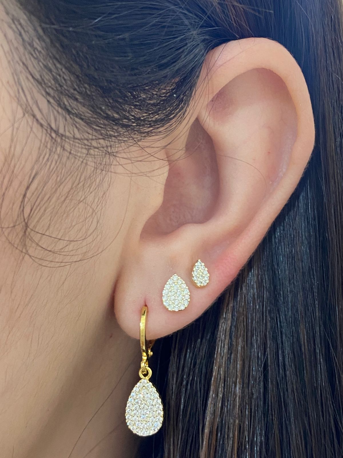 BRINCO TRIO ARGOLA PING GOTA CRAV ZIRCÔNIA