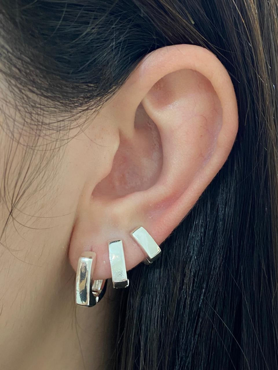 BRINCO TRIO ARGOLA QUADRADA LISA BANHO DE PRATA