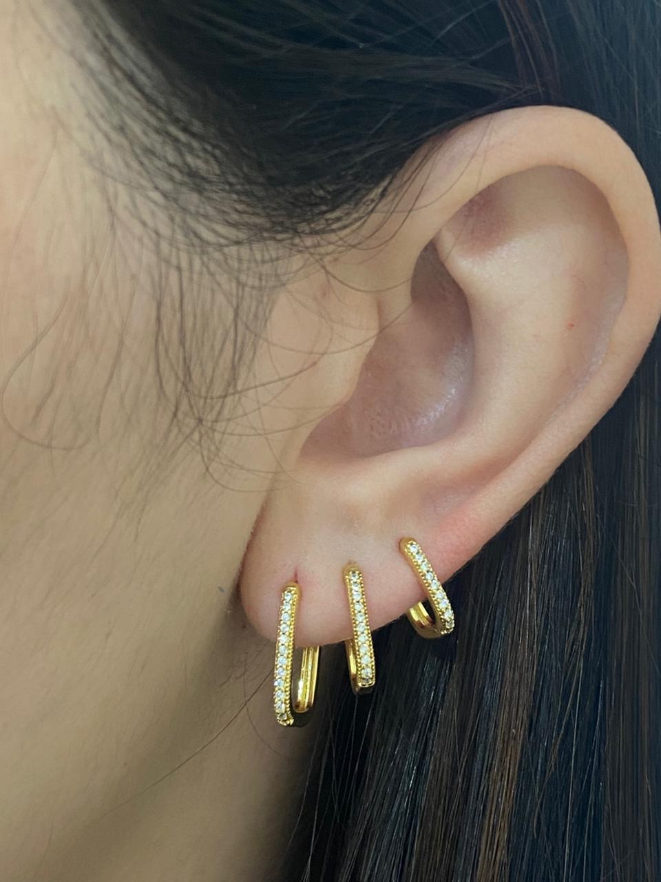 BRINCO TRIO ARGOLAS CLICK RETANGULAR CRAVEJADO