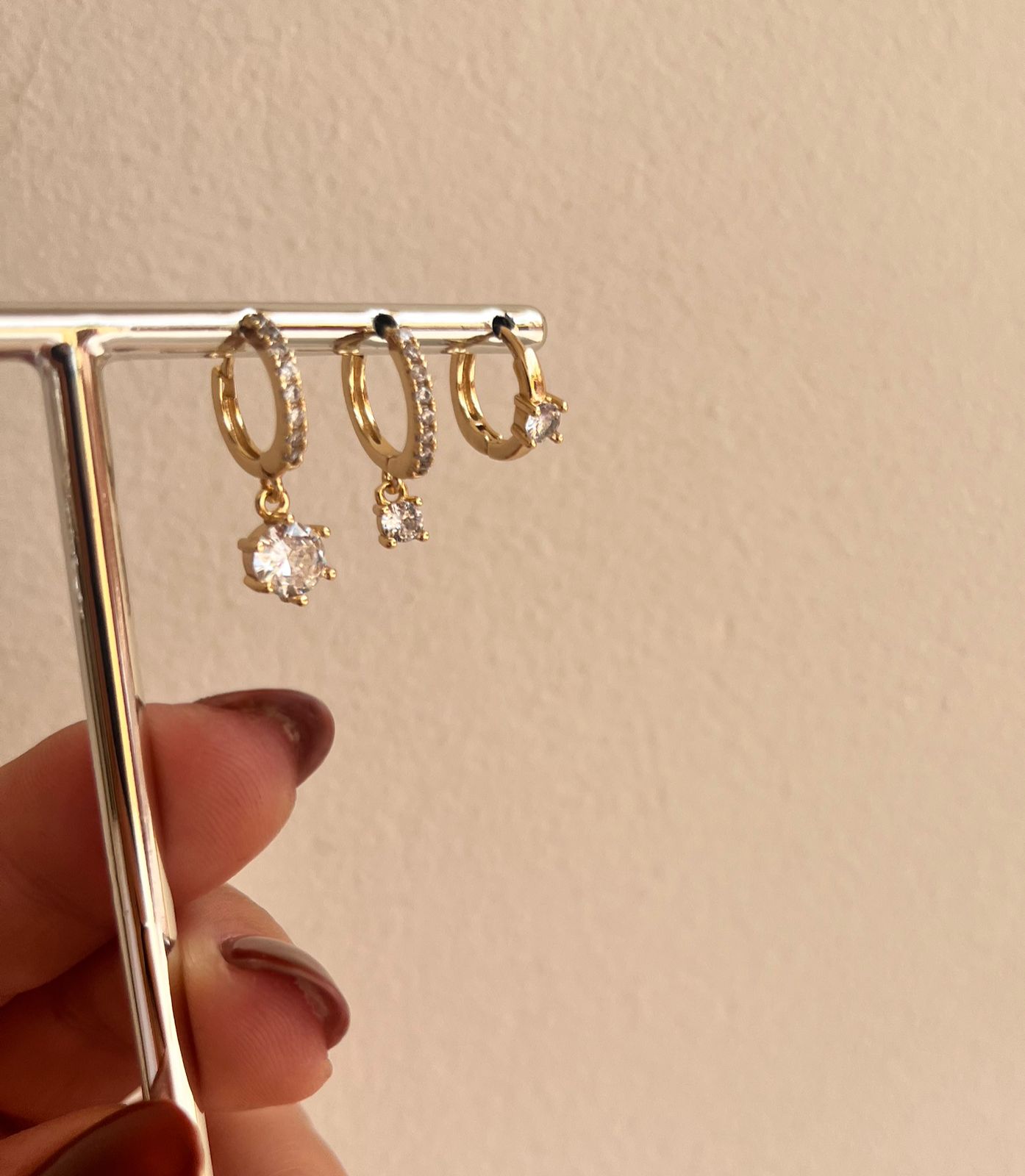 Brinco trio com pontos de luz ouro