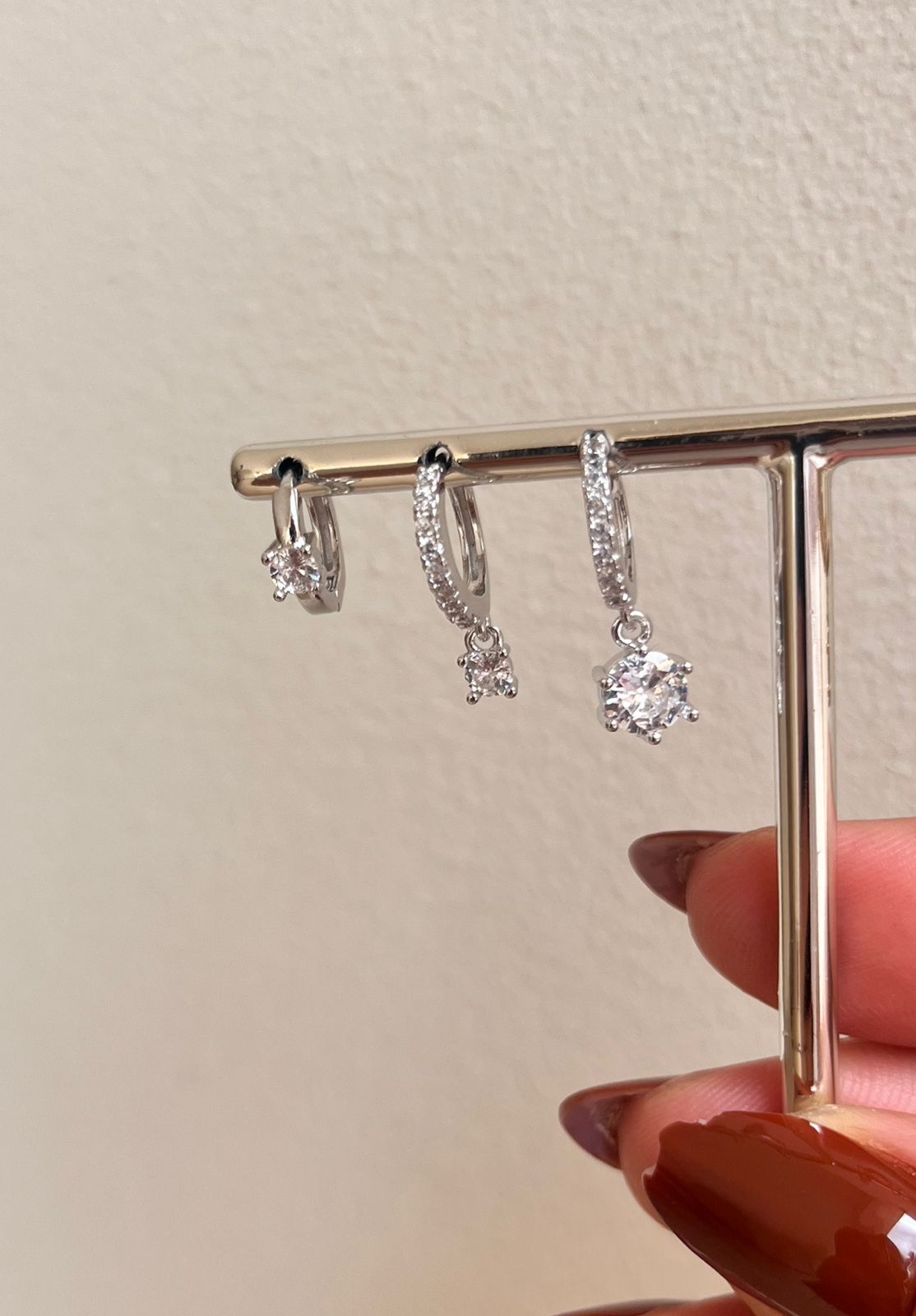 Brinco trio com pontos de luz rodio