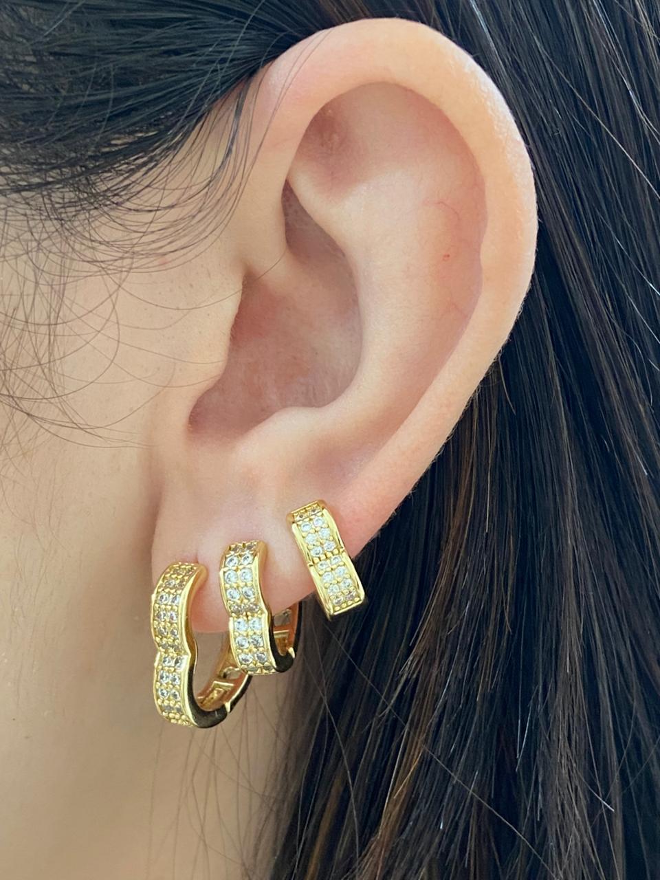 BRINCO TRIO CORAÇÃO CRAVEJADO DOURADO