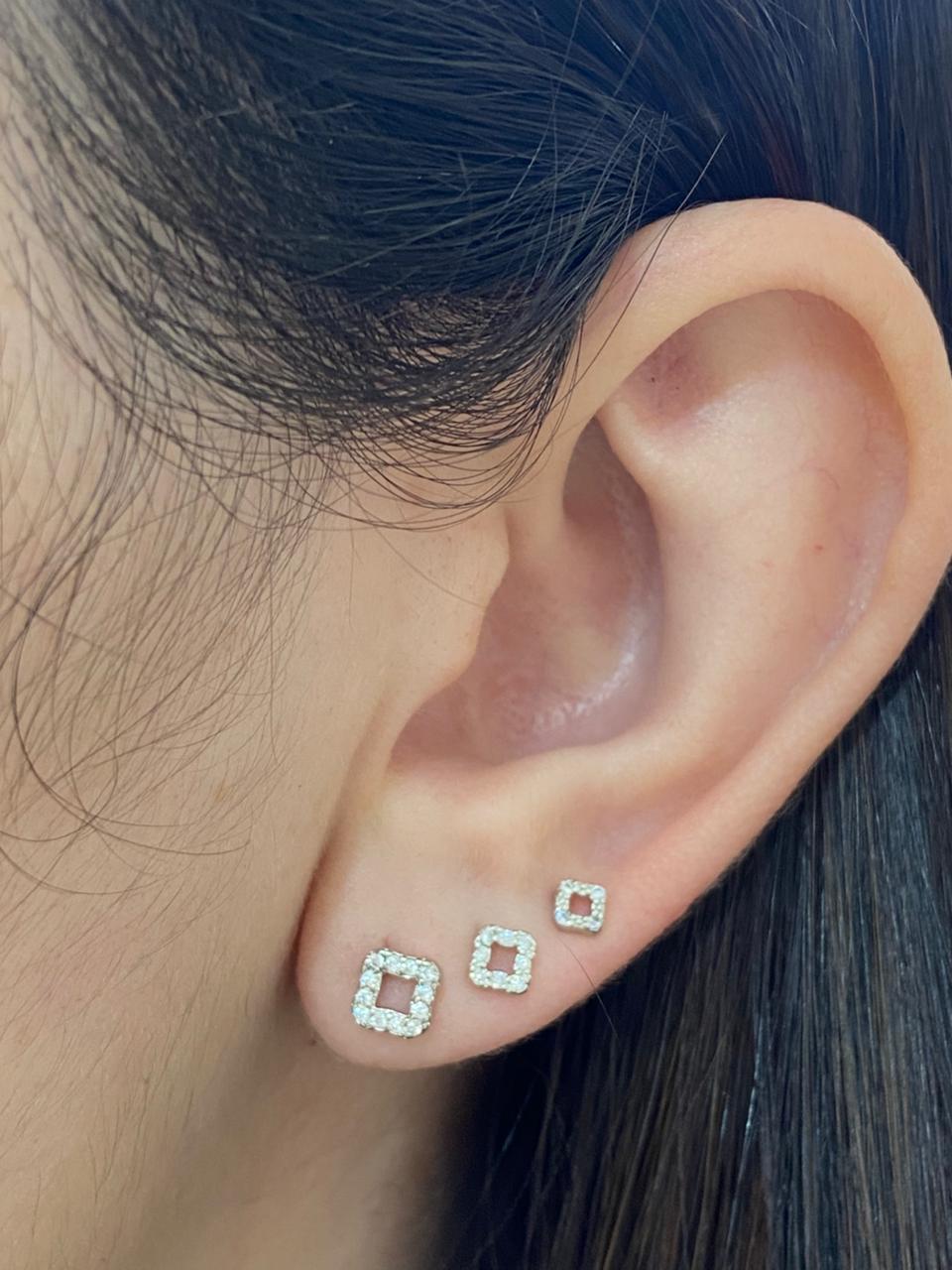 BRINCO TRIO QUADRADOS VAZADOS CRAVEJADO RODIO
