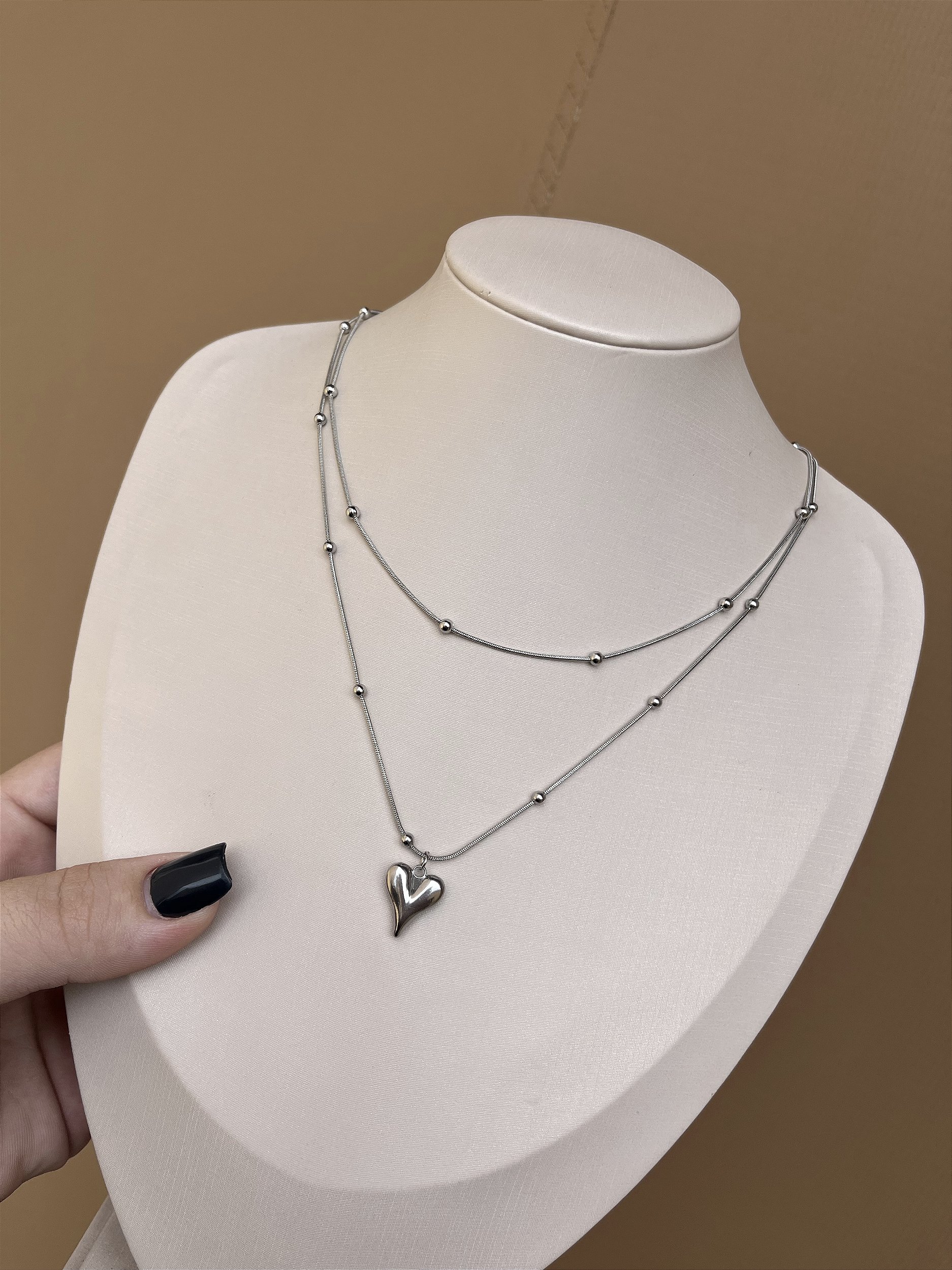 COLAR AÇO INOX BOLINHAS COM CORAÇÃO