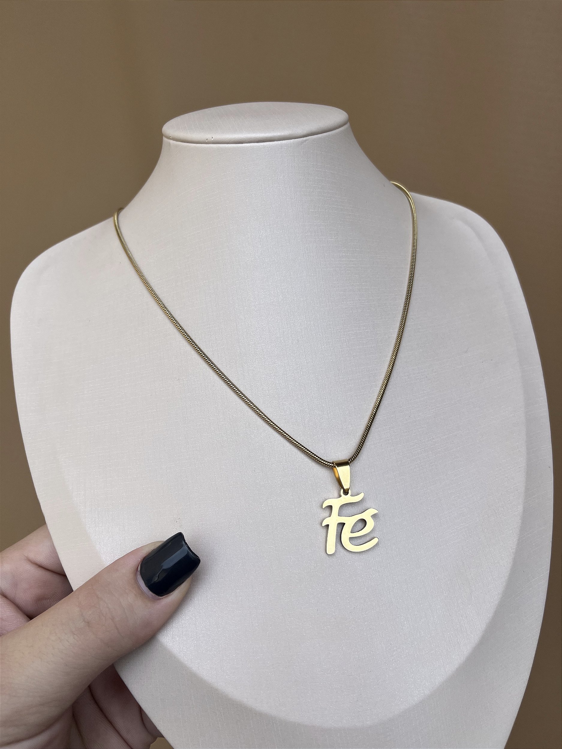 COLAR AÇO INOX RABO DE RATO PINGENTE FÉ