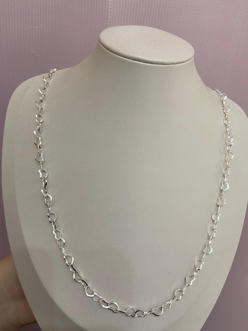 COLAR LONGO COM ELOS DE CORAÇÃO BANHO DE PRATA