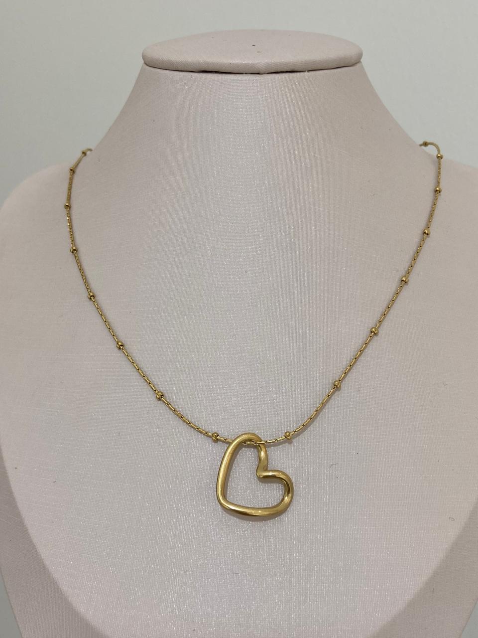 COLAR CORRENTE BOLINHA PIN CORAÇÃO VAZADO AÇO DOURADO
