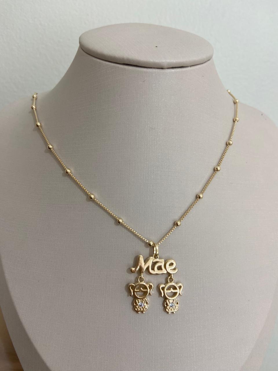 COLAR DOURADO DE BOLINHA PIN MÃE 2 MENINAS