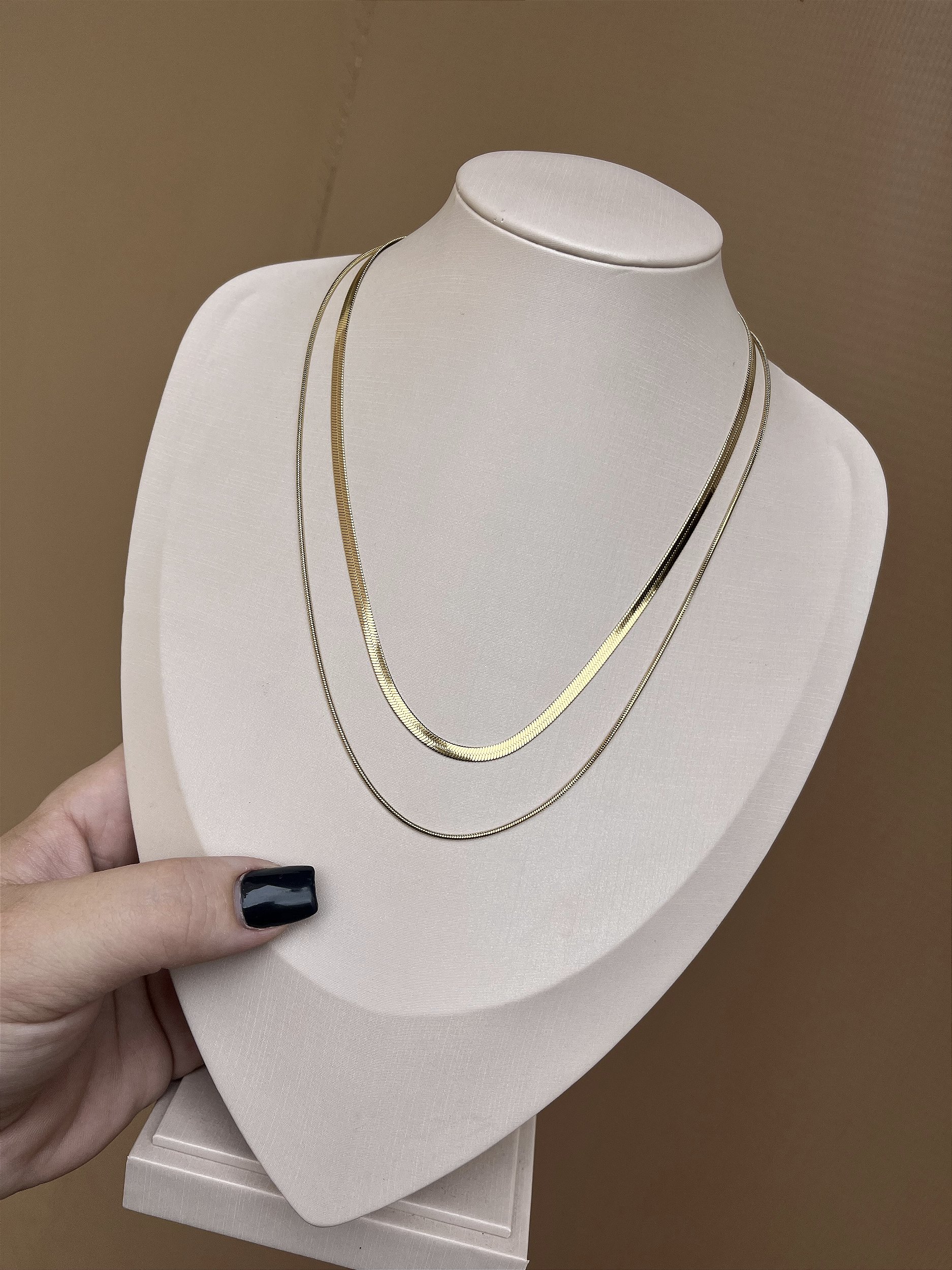COLAR DUPLO AÇO FITA COM RABO DE RATO