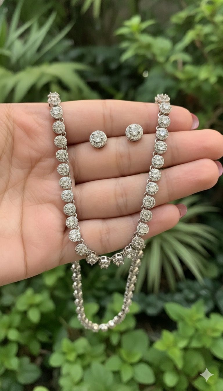CONJUNTO INSPIRAÇÃO COM ZIRCÔNIAS RODIO (BRINCO E COLAR)