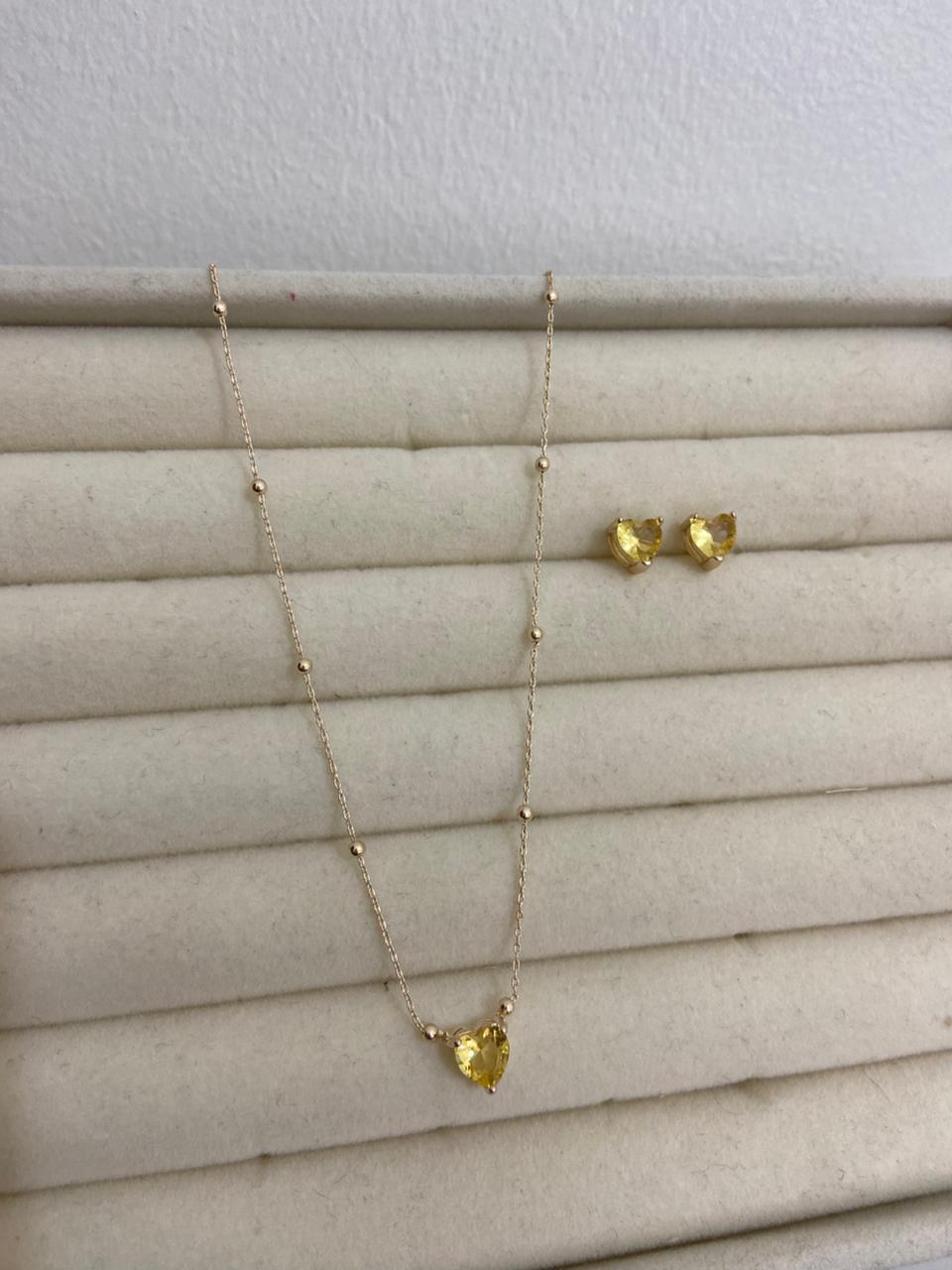 CONJUNTO DOURADO PONTO DE LUZ EM ZIRCÔNIA CITRINO CORAÇÃO
