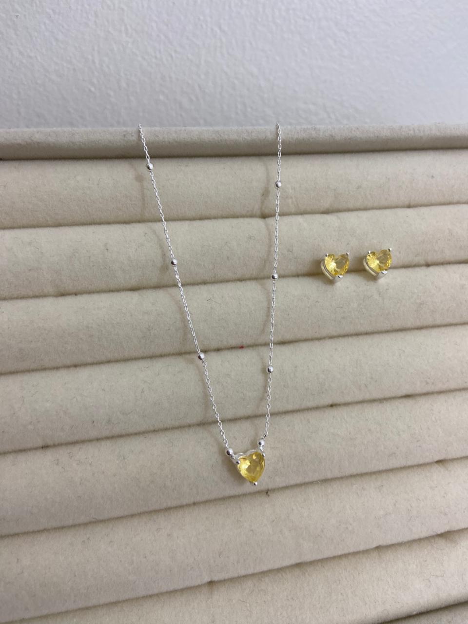 CONJUNTO PONTO DE LUZ EM ZIRCÔNIA CITRINO CORAÇÃO PRATA