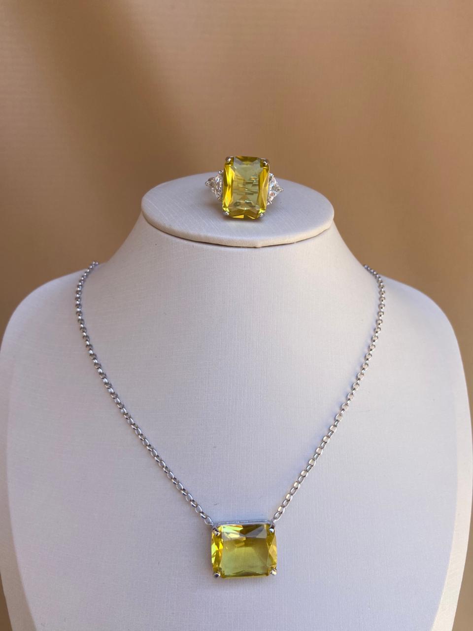 CONJUNTO QUAD CITRINO COLAR E ANEL PRATA 925