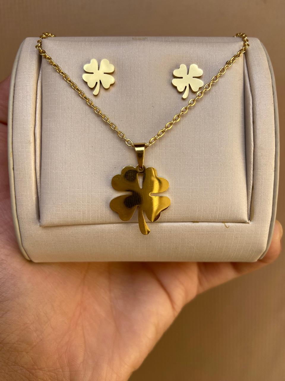 CONJUNTO TREVO DE 4 FOLHAS AÇO INOX