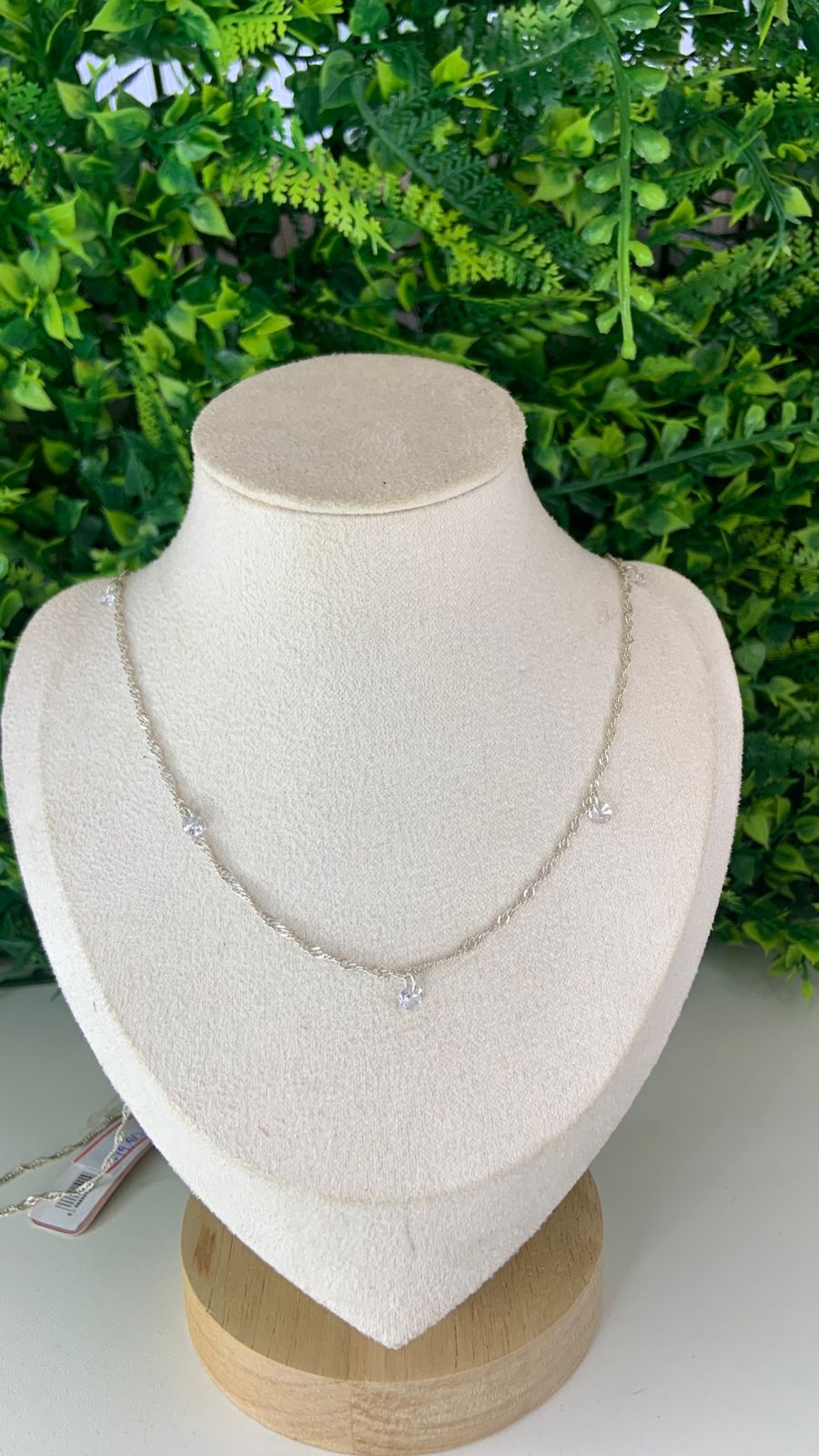CORRENTE TORCIDA COM PEQUENOS PINGENTES BRINLHANTES PRATA