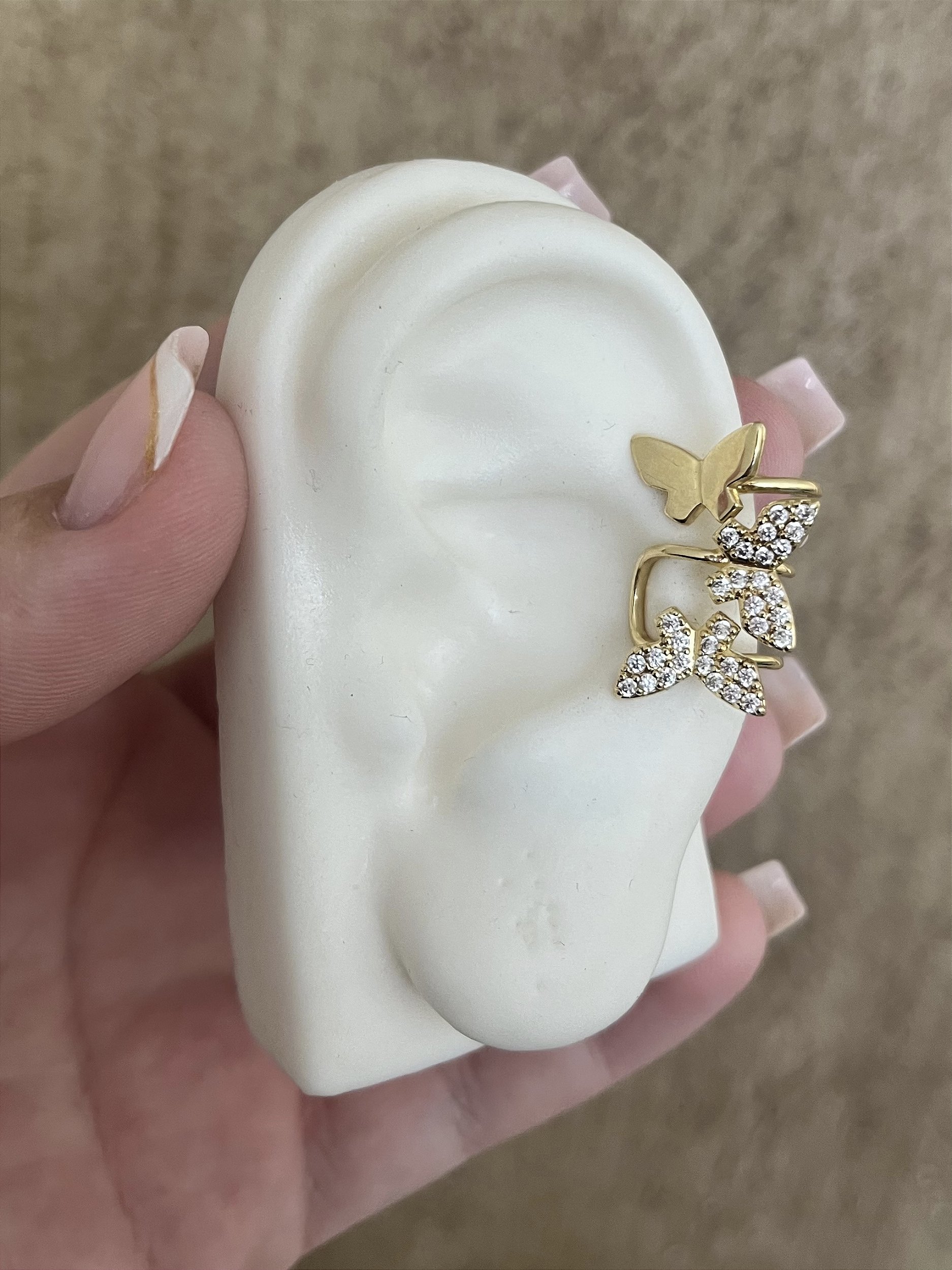 PIRCING FAKE DOURADO BORBOLETA CRISTAL