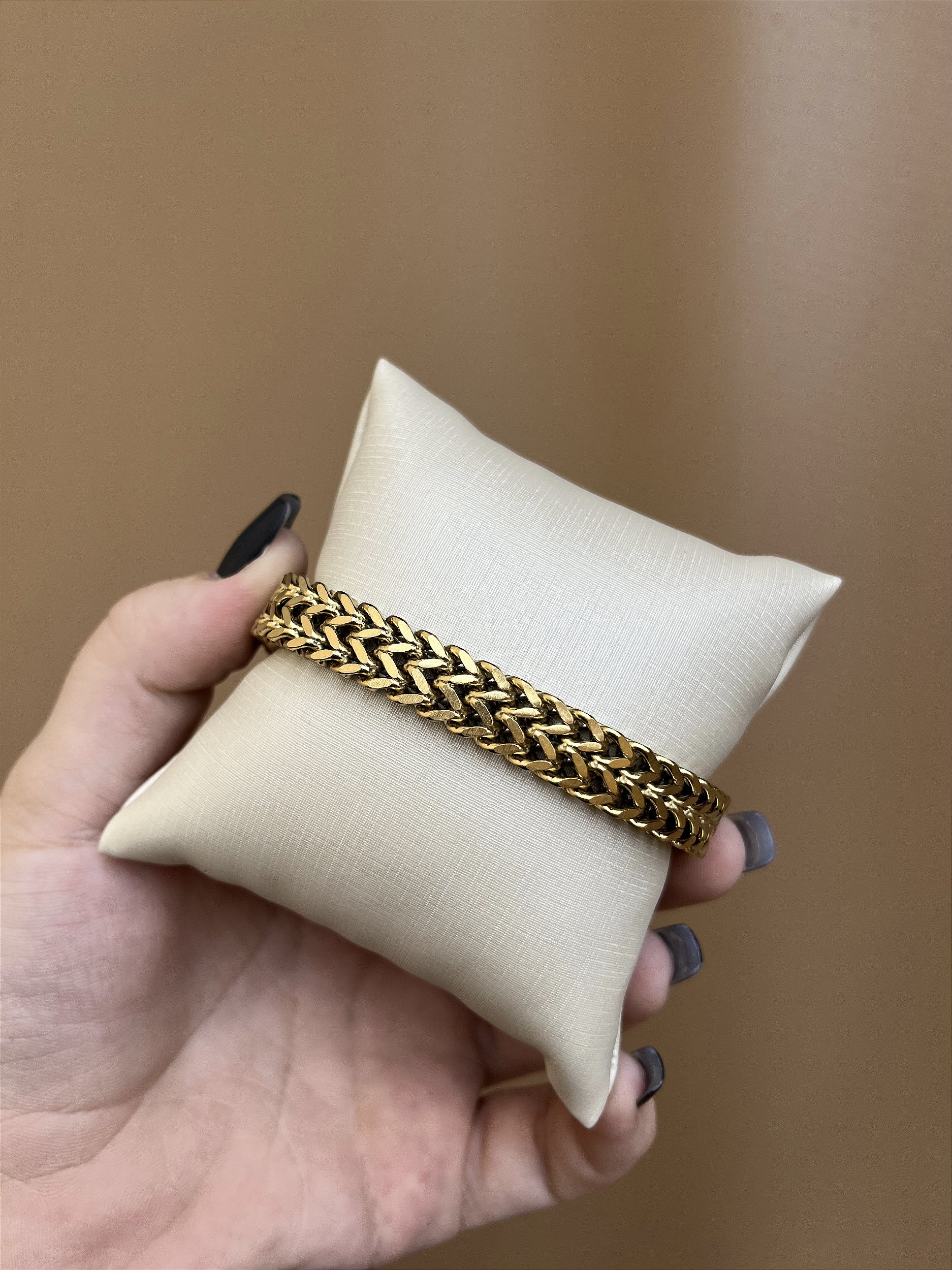 PULSEIRA AÇO INOX MASCULINA DOURADA