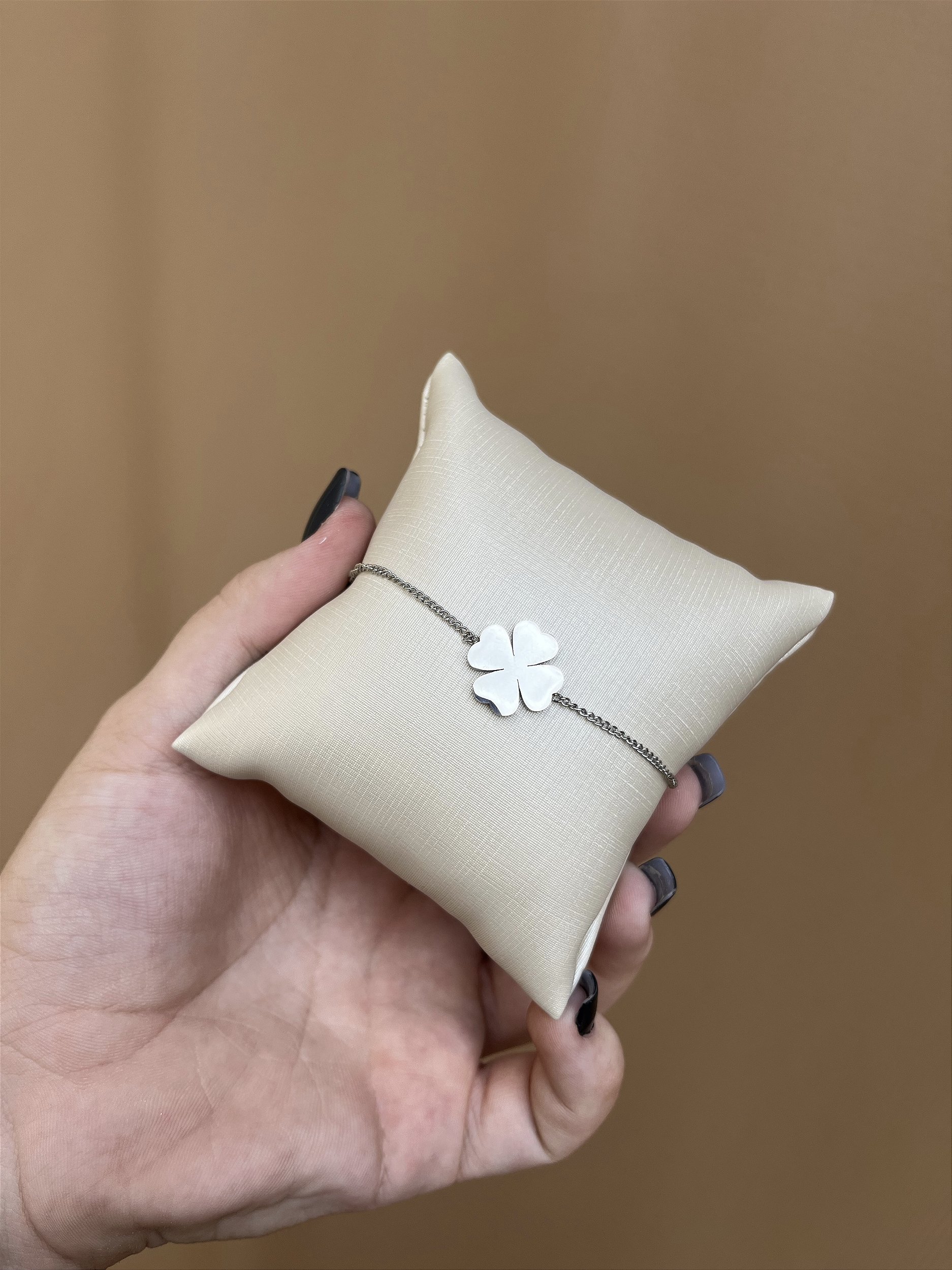 PULSEIRA AÇO INOX TREVO DE QUATRO FOLHAS