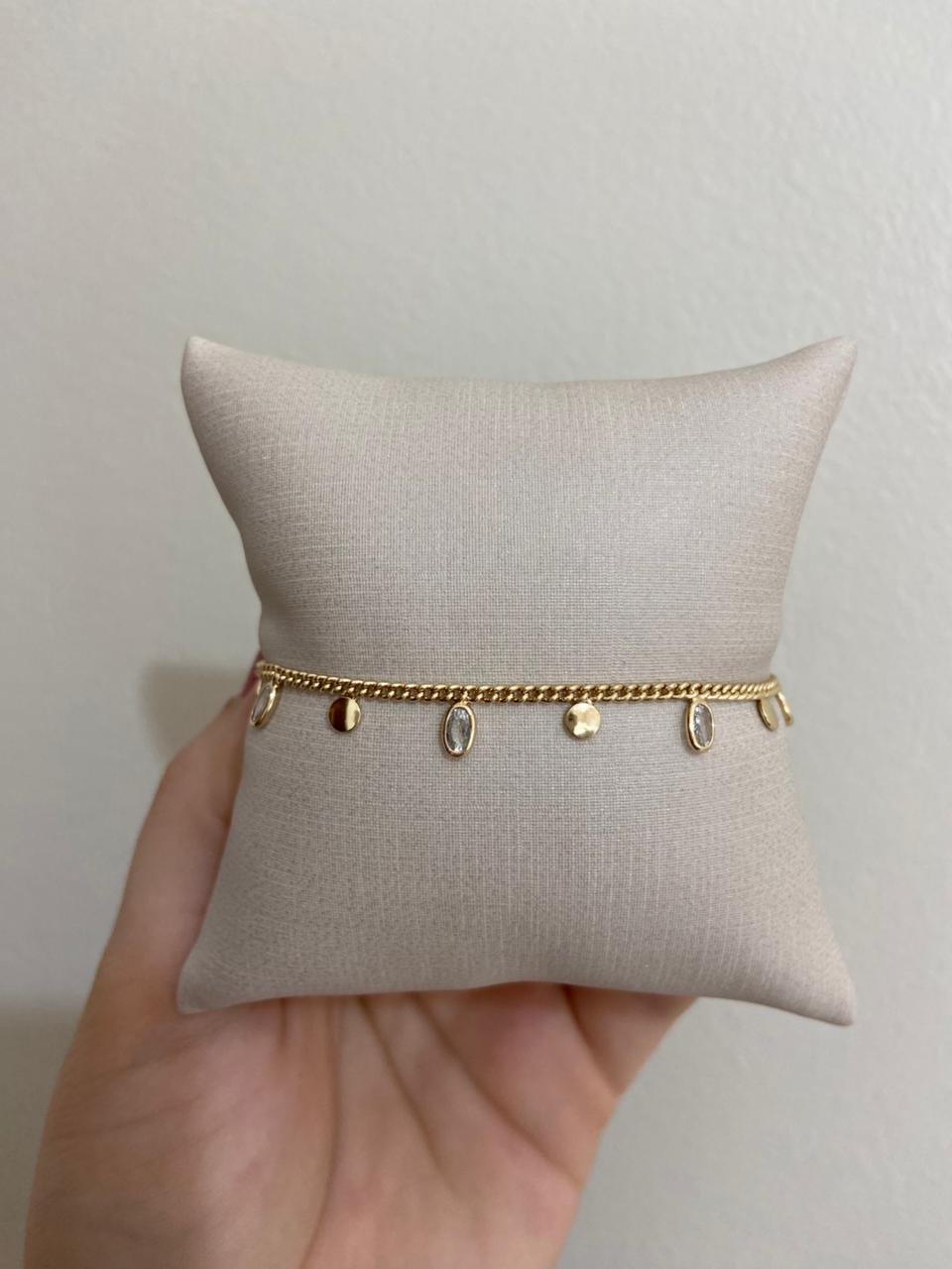 PULSEIRA DOURADA PONTO OVAL DE LUZ E CHAPINHA LISA REDONDO