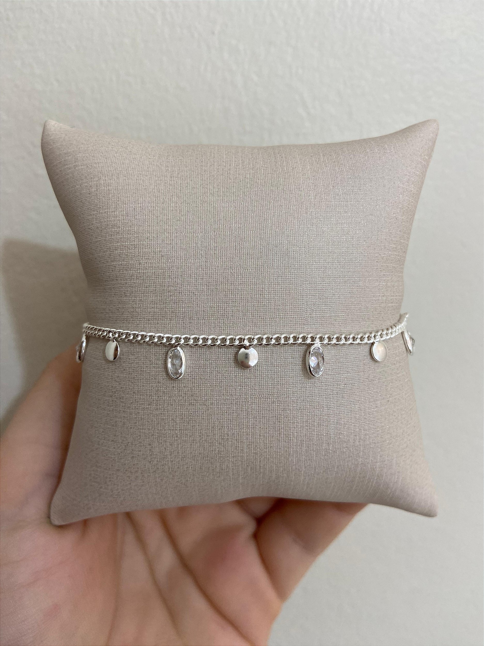 PULSEIRA PONTO OVAL DE LUZ E CHAPINHA LISA REDONDO PRATA