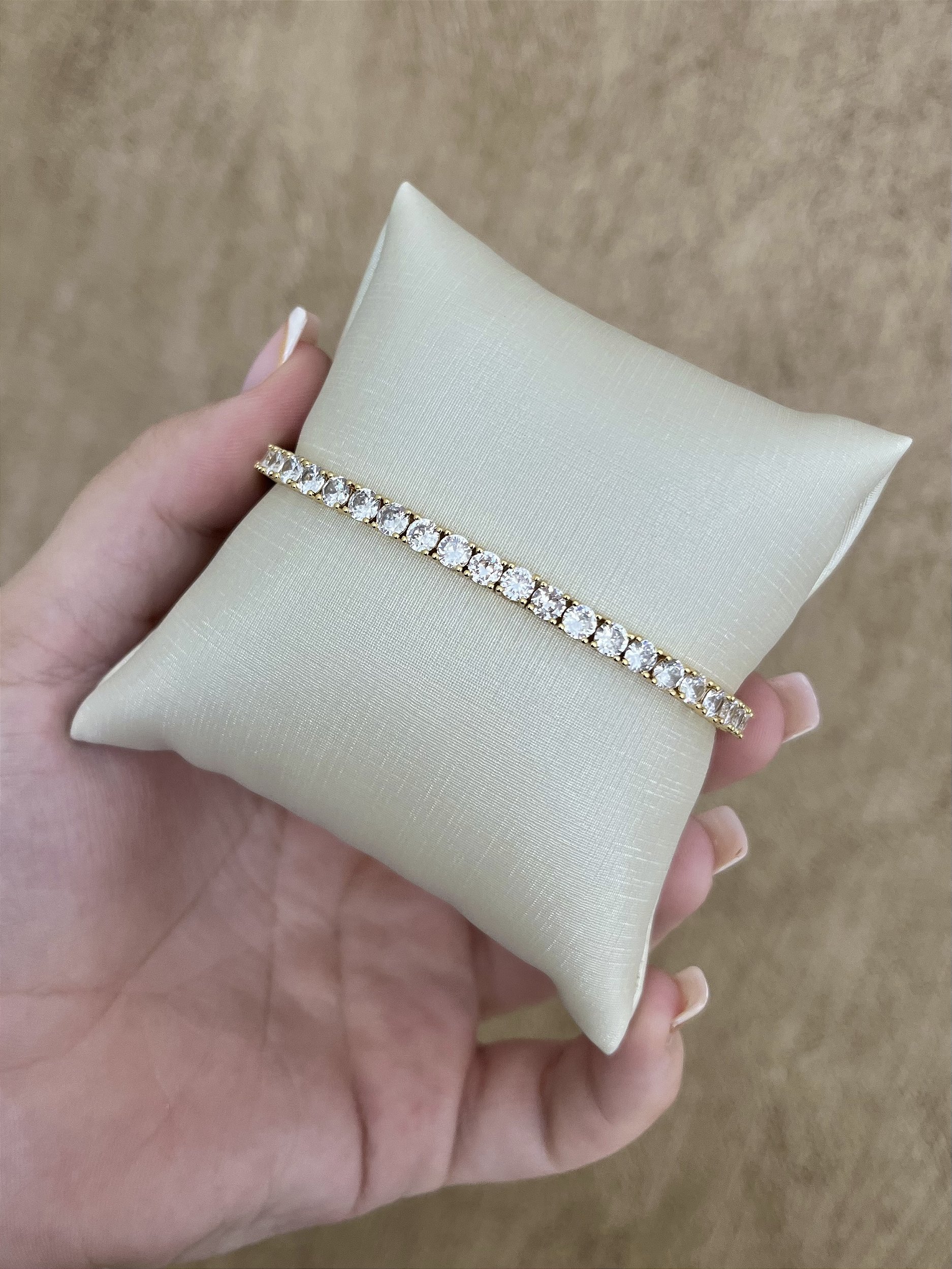 Pulseira riviera 4mm 4 pontas dourada 16+2cm