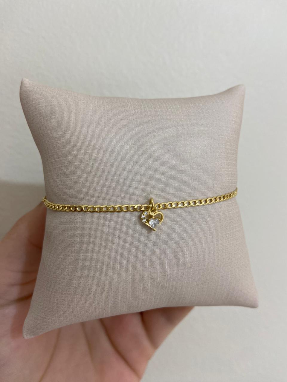 TORNOZELEIRA CORAÇÃO VAZADO PONTO DE LUZ