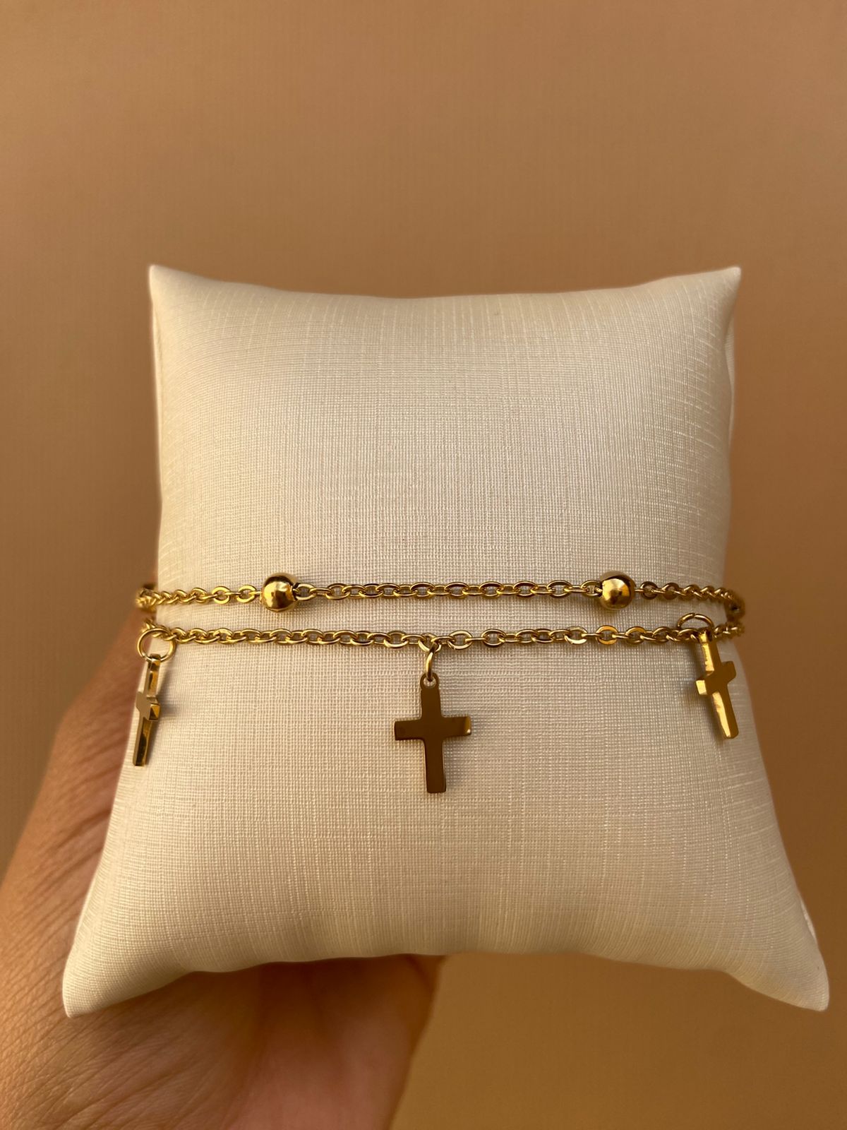 TORNOZELEIRA DUPLA AÇO INOX CRUCIFIXOS