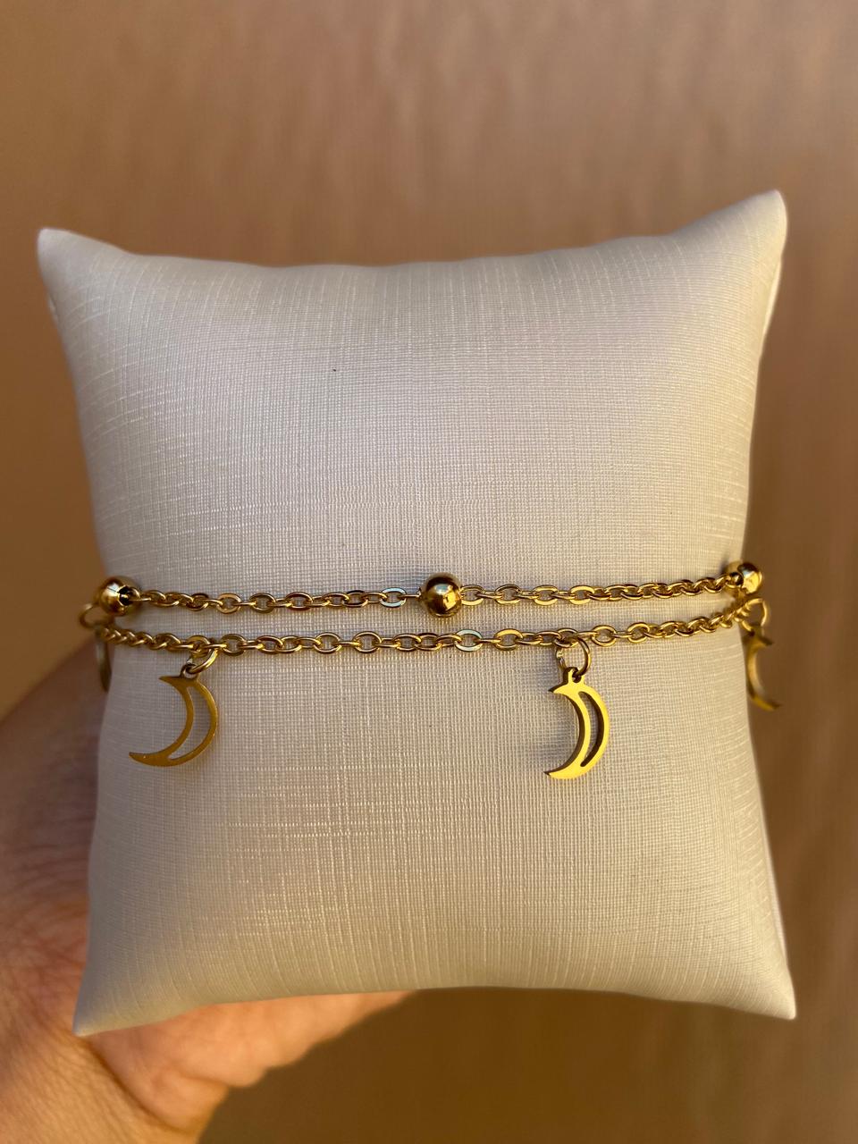 TORNOZELEIRA DUPLA AÇO INOX LUA DOURADA