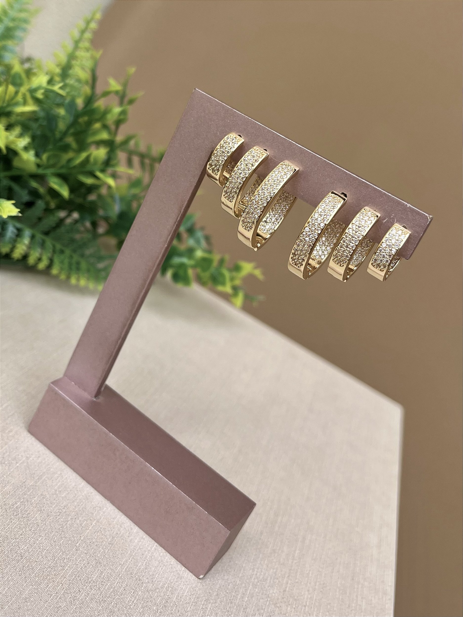 Trio argolas cravejadas ouro