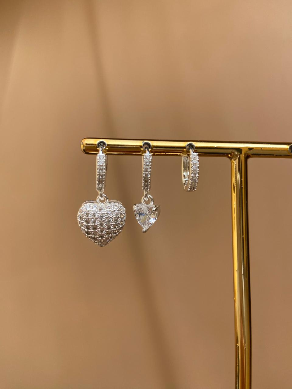 TRIO DE ARGOLINHAS CLIC CORAÇÕES PRATA